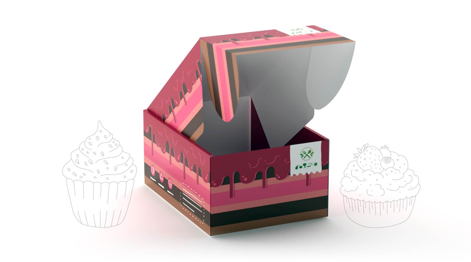 Nous vous recommandons d'utiliser un carton à gâteau ou un papier d'emballage supplémentaire pour les gâteaux et les tartes afin de bien protéger vos pâtisseries. Le chocolat reste également frais plus longtemps s'il est emballé dans une feuille de plastique avant d'être emballé dans l'emballage de vente.
