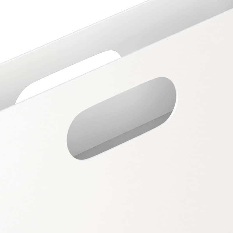 Les poignées du sac en papier sont découpées dans le haut du sac et présentent une forme ovale de 9 x 3 cm (transversale). Le rebord renforcé permet une prise en main sûre et confortable. Visuellement, le sac parait solide, net, sans fioritures.