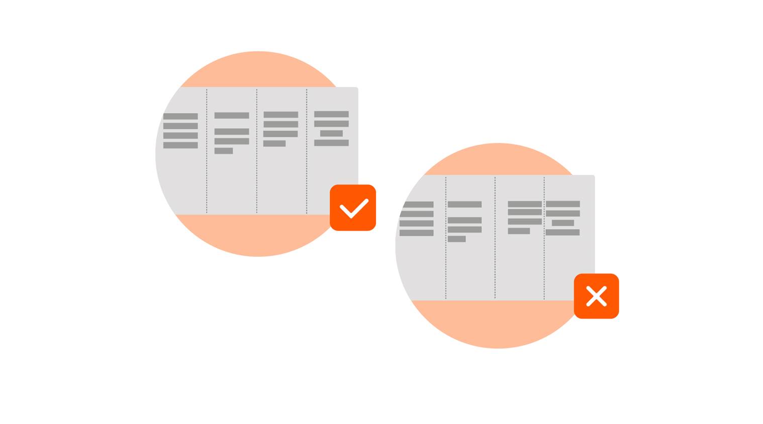 Explication: Si des éléments d’agencement sont placés de manière incorrecte entre les lignes de pliure, l’impression optique de votre produit en subira une influence négative.