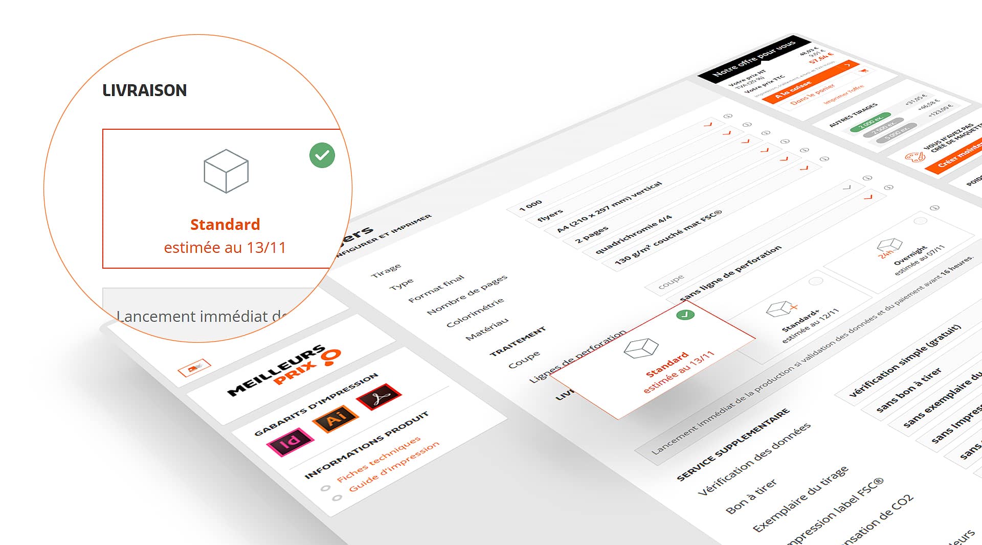 Pour ceux qui se décident à la dernière minute, nous proposons, en plus de l'envoi standard, des options de livraison plus rapides, comme l'option Standard+ ou Overnight.
